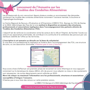 👏 La SRAE Addictologie des Pays de La Loire et le CRREO TCA-Basinga du CHU de Nantes viennent de lancer leur nouvel annuaire pour le référencement des professionnels prenant en charge les TCA en Pays de la Loire !