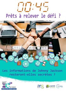 Les participants à « Sant’escape Sécurité numérique » se mettent dans la peu de personnages fictifs : cinq journalistes peu scrupuleux d’un magazine People qui doivent décrocher un scoop sur l’état de santé d’une célébrité pour sauver leur journal de la faillite. Les bonnes pratiques de base en matière de sécurité numérique ont-elles été bien suivies dans l’Institut Médical des Etoiles des Pays de la Loire ou seront-elles la clé d’accès aux informations de santé pour les journalistes ? Défi à relever en 45 minutes, pas une de plus !