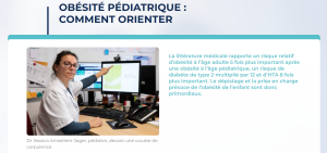Accueil » Obésité pédiatrique : comment orienter ? Obésité pédiatrique : comment orienter ? Publié le 06 juillet 2023 En savoir plus Newsletter Vous souhaitez avoir plus d’informations dans le domaine de la nutrition ? Inscrivez-vous à notre newsletter en adhérant de façon non payante à la SRAE Nutrition. Se créer un compte et adhérer à la SRAE Nutrition !