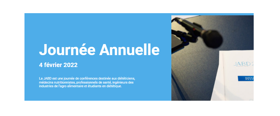 La JABD est une journée de conférences destinée aux diététiciens, médecins nutritionnistes, professionnels de santé, ingénieurs des industries de l’agro alimentaire et étudiants en diététique.