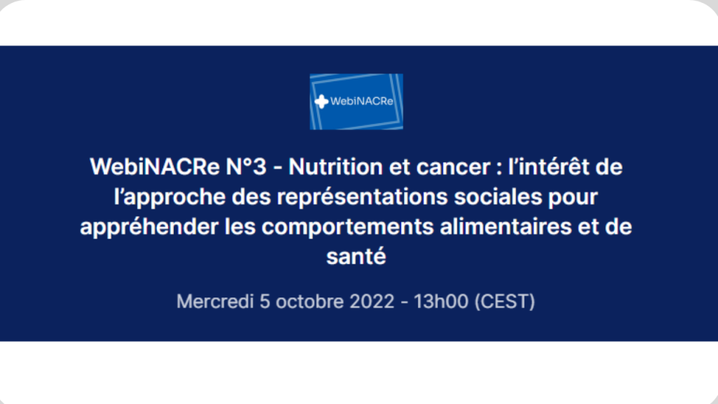 Accueil » Evènements » WebiNACRe N°3 – Nutrition et cancer : l’intérêt de l’approche des représentations sociales pour appréhender les comportements alimentaires et de santé