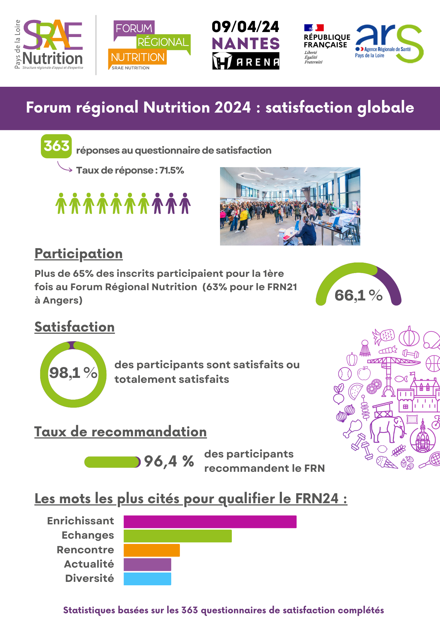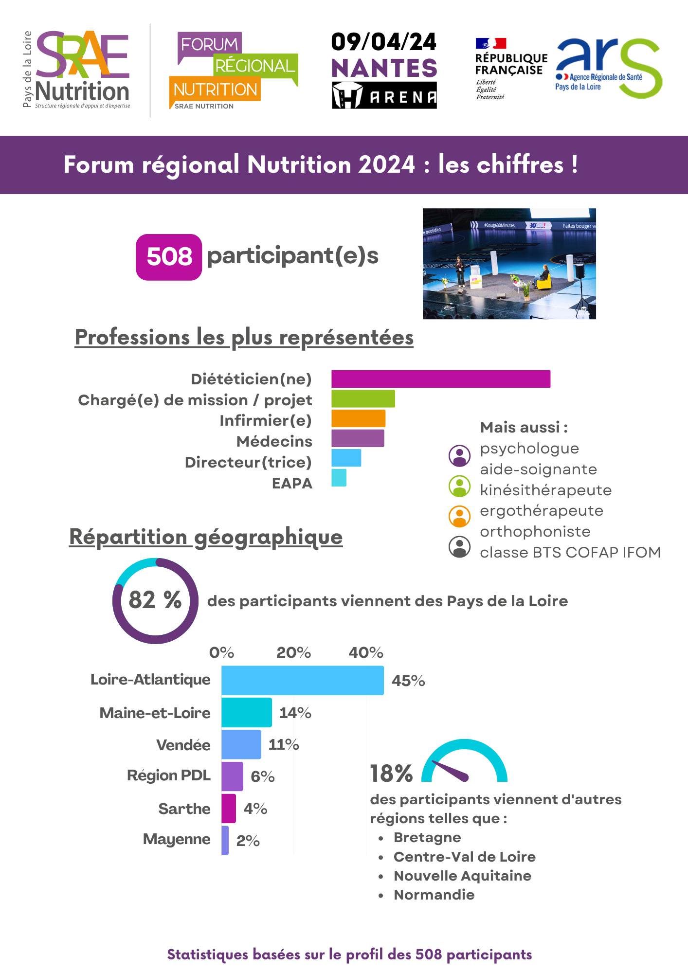 Le Forum Régional Nutrition 2024 a été organisé par la SRAE Nutrition avec le soutien de l’Agence Régionale de Santé Pays de la Loire.